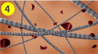 首先將洢蓮絲注射至欲改善的凹陷或是皺痕目標區域後,原本坍塌的部位即可獲得初步填充支撐的作用;接著洢蓮絲會啟動免疫反應,誘導纖維母細胞與膠原蛋白持續增生,在材料降解的同時,晶球體積並不會縮小,而是逐漸被人體瓦解吸收,並被新生長出來的膠原網狀纖維取代,進而全面性地改善凹陷、紋路、下垂等老化問題,以達到立體支撐、緊緻飽滿的雙重效果。