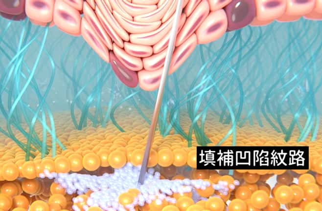 將洢蓮絲注射至目標層次,達到初步填充支撐的效果
