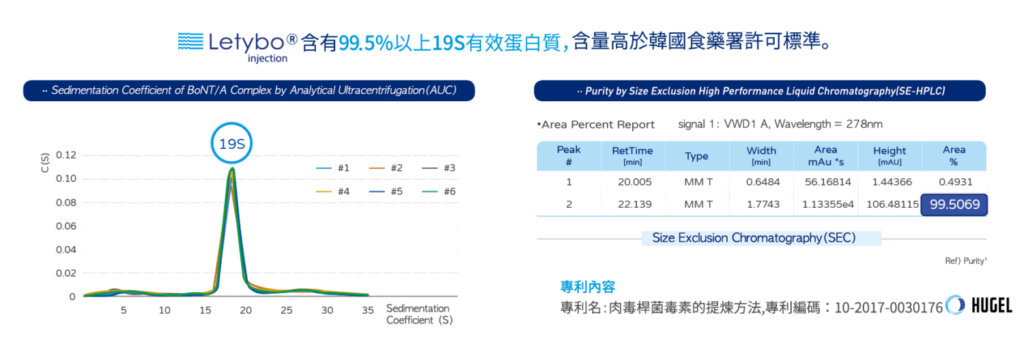 肉毒桿菌的製造需經過「發酵、純化、安定、混合」4步驟,Letybo保提拉肉毒採取Hugel製藥公司專利提純法,產製的900kD蛋白純度達到99.5%,不但含量高於韓國食藥署標準,多項臨床研究及期刊論文也證實其安全、效果跟持久度都不亞於歐美品牌。